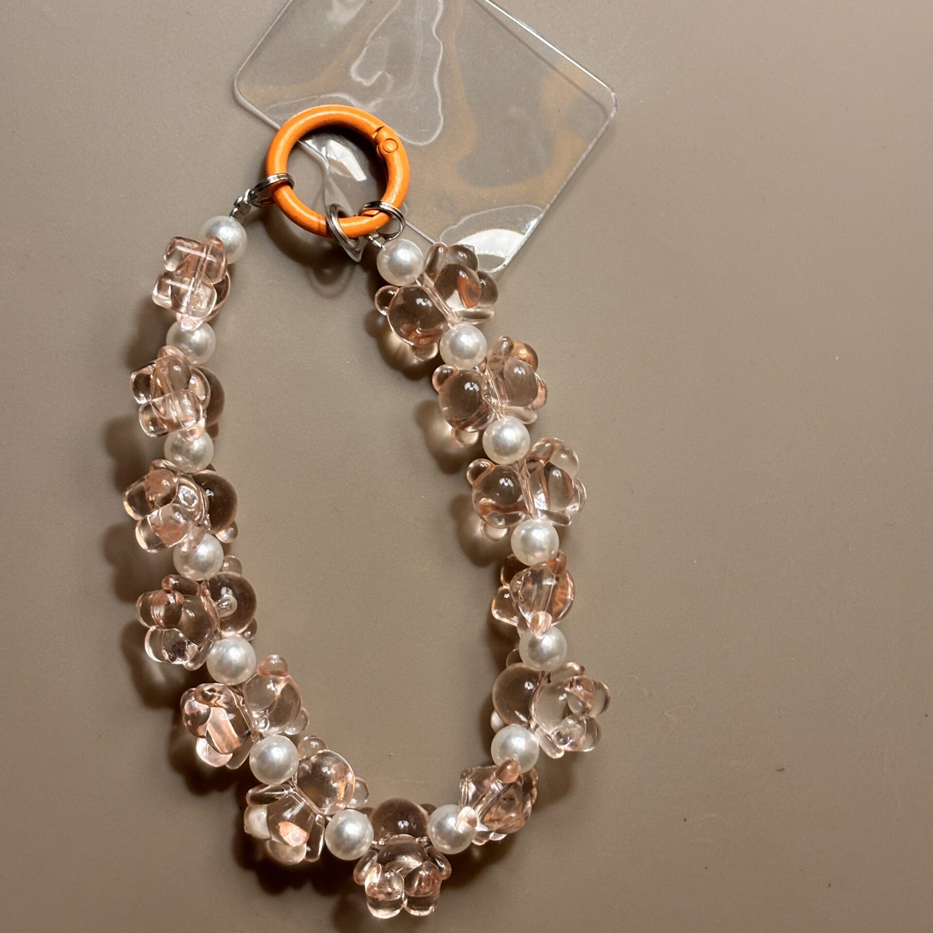 Bring a touch of springtime charm to your phone with the Blossom Pearl Phone Charm. This lovely charm features a string of delicate, translucent pink flower-shaped beads, beautifully complemented by the soft glow of faux pearl beads. Lightweight and easy to attach, this charm is perfect for personalizing your phone with a touch of feminine and graceful style. It’s a little bouquet of beauty at your fingertips!